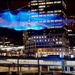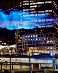 Suspended between architecture, art, and technology, Unnumbered Sparks transforms the sky above Vancouver’s waterfront into a living canvas of collective expression. Conceived by artist Janet Echelman and Google creative director Aaron Koblin, the installation fuses handwoven sculpture and digital interaction.
